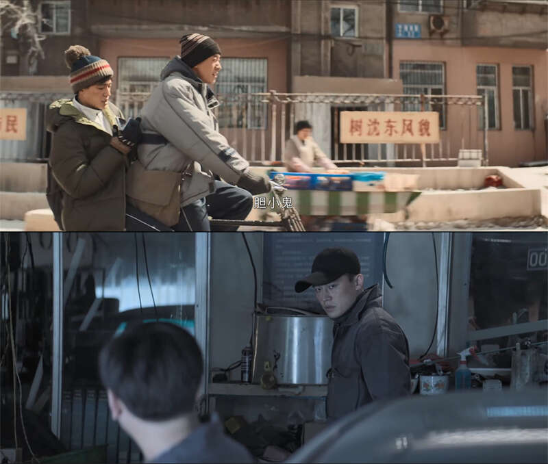郑执明显是将小说的思维带到剧本中,《胆小鬼》的多线叙事效果并不理想。比如开篇不久,王頔骑车带着秦理回家,他们一起听着一盒歌曲《胆小鬼》的磁带,一个音乐蒙太奇,就从1999年12月切换到2011年的12月,这个时候的秦理在一家汽车修理店工作,他戴着助听器,去菜市场买了牛蛙,用牛蛙来喂蛇。书粉很轻易get到编剧这里的伏笔;但对一个对这个故事完全陌生的观众来说,这个多线叙事就是莫名其妙、制造理解障碍:怎么突然跳切到这里了,人物是在干什么?