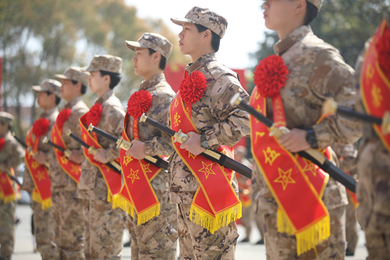 3月29日,浙江嘉兴,浙江省2022年上半年向入伍女兵赠送“从戎之剑”仪式在桐乡举行。人民视觉供图