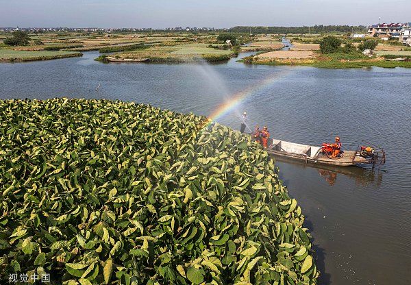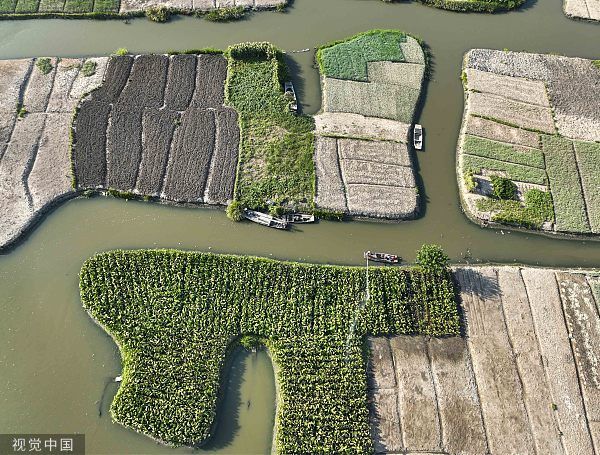 江苏兴化垛田传统农业系统是“全球重要农业文化遗产”,龙香芋是兴化市垛田街道传统的种植品种,种植面积约5000亩。龙香芋是喜湿怕干的作物,在田150来天需要天天浇水,七、八月份是龙香芋生长的关键期,这时芋叶也长得蓬蓬勃勃了,水更要浇得勤,需要上下午各一次,因此该作物灌溉工作劳动强度较大。近期,江苏省南京、无锡、苏州、泰州、扬州等多地连续发布高温预警,日最高气温达到40摄氏度或以上,并且持续时间较长,给农业生产带来不小的影响。当地农业、农技、水利、电力、消防等多部门与龙香芋种殖户积极应对高温干旱,力争将不利的天气影响降到最低,保障龙香芋丰产丰收。