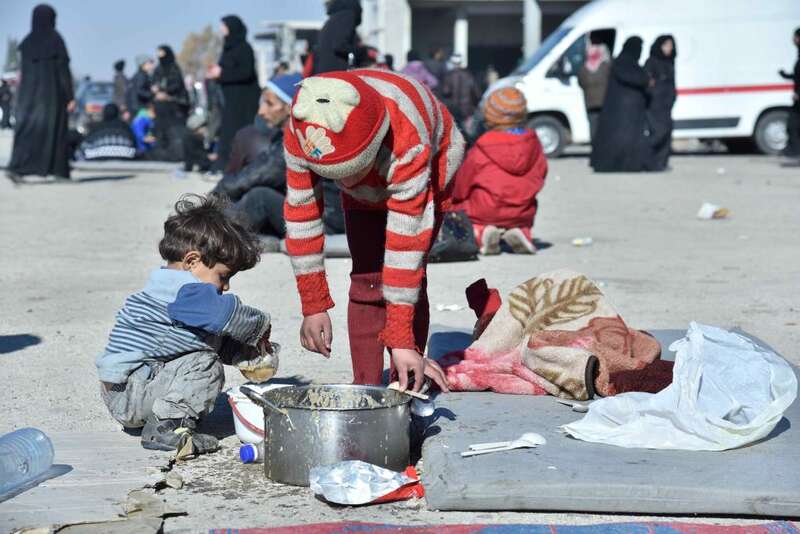 2016年12月9日,在叙利亚北部城市阿勒颇市吉卜林临时安置点,从反政府武装控制区撤出的儿童在吃饭。(新华社记者 杨臻 摄)