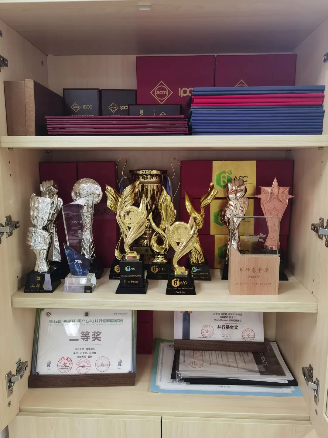 超算队的部分奖杯和证书