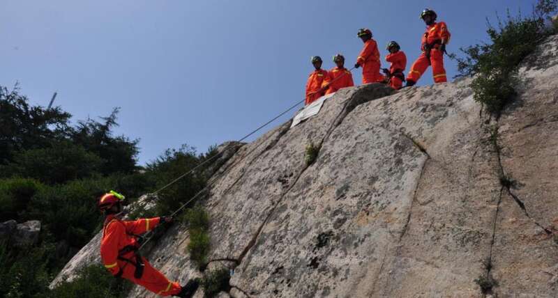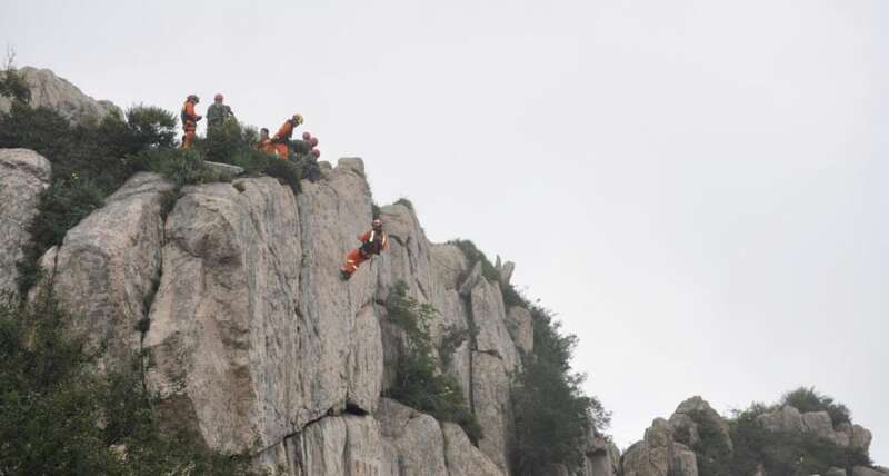 盘道救援——悬崖峭壁架起橙色人梯