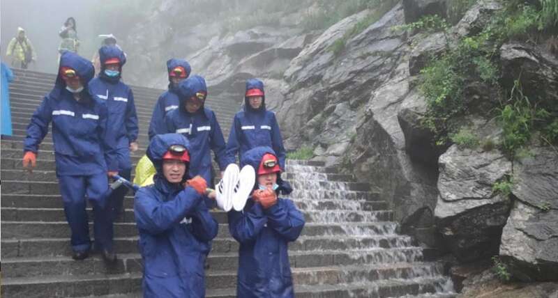 2018年的“五一”小长假对李令政来说,至今记忆犹新。5天之内,他和队友们连续处置了24起救援。从凌晨到深夜,他们抬着担架,在十八盘反复走过24次,跨过近4万级台阶。走在高差400余米、有着1600余级台阶的十八盘,摩崖陡峭、深壑林立,负重抬人每走一步都异常艰难,他们咬紧牙关,硬是坚持了下来,直至将第24名游客平安送上救护车。