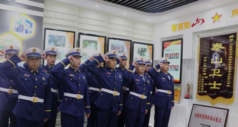 “这根扁担对我们来说意义非常重大,多年前当兵来到泰山,班长让我们做的第一件事就是跟着挑山工去体验挑水,了解他们的生活状态,学习他们埋头苦干、勇挑重担的精神。”据泰山消防救援站政治指导员李令政介绍,自泰山消防救援站建立以来,“走一遍盘道,植一颗青松,访一位挑夫,学一遍队史”,就成为泰山消防救援站每一名消防救援人员入职的“第一课”,接力传承26载。一批批新入职消防救援人员沿着老班长的足迹,坚守信念、永葆本色。“誓言如山、尽责至善”的泰山卫士精神,如灵魂般根植于每名消防救援人员心中,成为他们刻在骨子里,融进血脉里永恒不变的信仰。