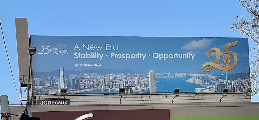 广告上是一张香港全景图,配以“回归祖国25周年”等元素,以展示香港回归祖国后进入了“稳定”、“繁荣”和“机遇”并存的“新时代”。
