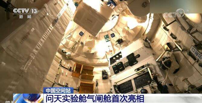 此外,中国载人航天公众号公布的视频中,问天实验舱气闸舱也首次亮相。航天员进入了问天实验舱气闸舱,问天气闸舱较核心舱节点舱的内部空间更大,出舱口直径为一米,也比节点舱出舱口更大。未来航天员将从这里执行出舱任务,问天气闸舱也将成为航天员的出舱主通道,而此前执行出舱任务使用的核心舱节点舱,今后则作为备份出舱通道。
