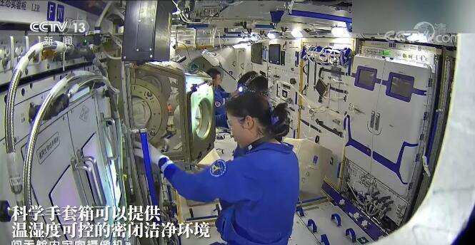 视频中可以看到,陈冬、刘洋、蔡旭哲三名航天员正在问天实验舱里忙碌,他们正在进行的是对科学手套箱与低温存储装置的解锁与安装工作。科学手套箱可以提供温湿度可控的密闭洁净环境,为开展生命科学、材料科学等学科领域的空间实验、试验提供支持,还可以协助航天员在轨实现精细操作或重复操作的科学实验。