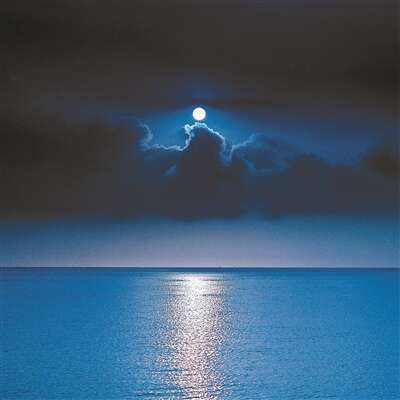 拍过那么多次大海,海和蓝最喜欢的是三亚和陵水的那片海,沙滩上的黑色礁石,衬托着蓝色的海洋,色彩对比强烈。印象最深的则是2019年,他去菲律宾游玩,那里有六千多个海岛,他就穿梭于海岛之间看海。“一天晚上,我看到了‘海上生明月’,超级月亮从蓝色的海洋升起,我身体最直接的反应是汗毛都竖起来了。”