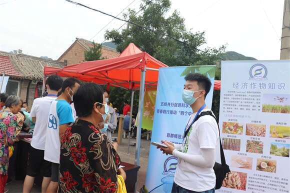 实践队还充分发挥专业优势,为村民带来有关疫情防控、常见安全知识、经济作物和野生动物保护的科普知识,并下发自制的健康饮食、生活相关的宣传册及防疫物资。在实践队科普基地——延庆区刘斌堡乡的青山园,实践队与小朋友们互动,开展“爱鸟周”活动。