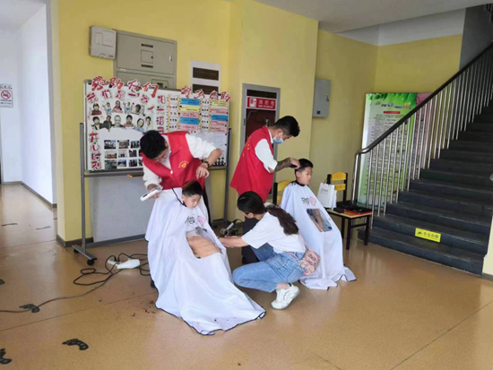 志愿者在御亭花苑小区爱心义剪。谢炳元/摄