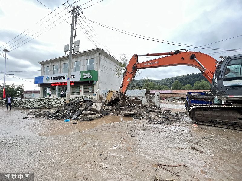 2022年8月18日,西宁,消防救援队伍展开救援。