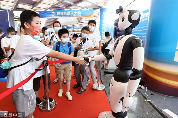 2022年8月19日,北京,观众在2022世界机器人博览会上参观。