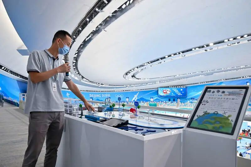 大学生记者探访国家速滑馆内部,体验冬奥文化。