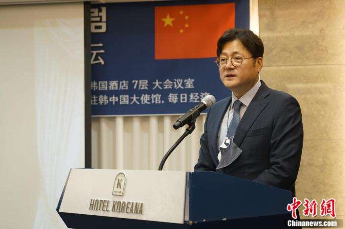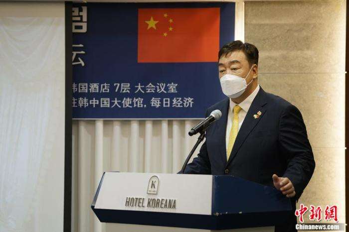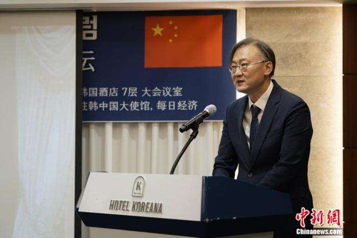 图为中国驻韩国大使邢海明致辞。刘旭 摄
