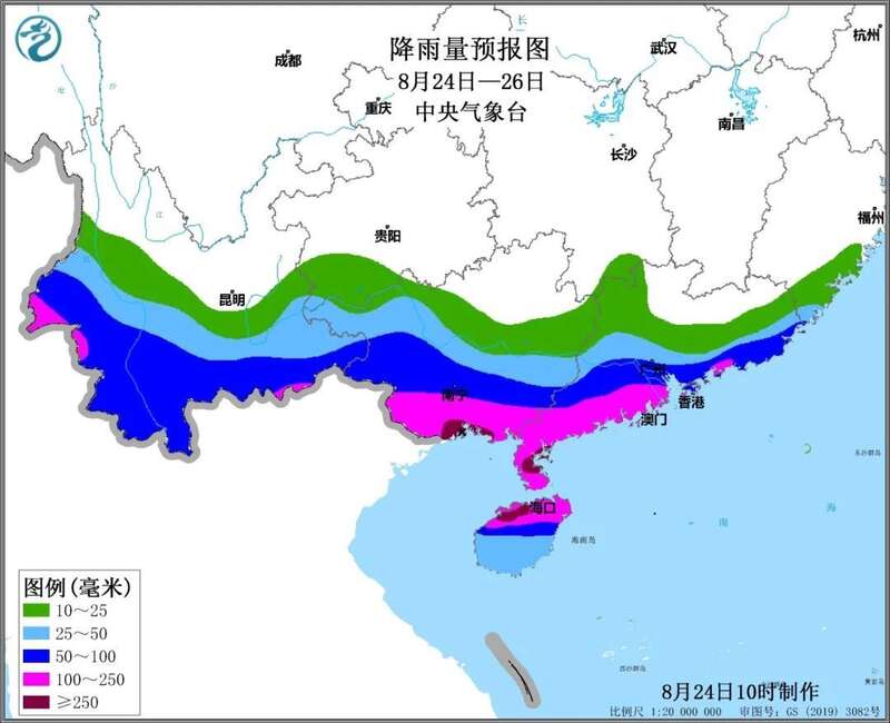 受其影响,今夜开始,华南沿海的降雨将逐渐增强。今夜到明天,广东东部沿海和西部、广西南部、海南岛等地有大到暴雨,其中, 广东西南部沿海、广西南部沿海、海南岛北部等地的部分地区有大暴雨,局地有特大暴雨。
