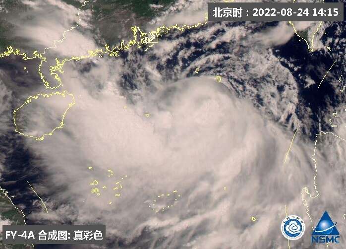 从云图上看,今天下午14时前后,台风“马鞍”结构仍是中心不对称,其西侧和南侧云系发展旺盛,对流活跃。