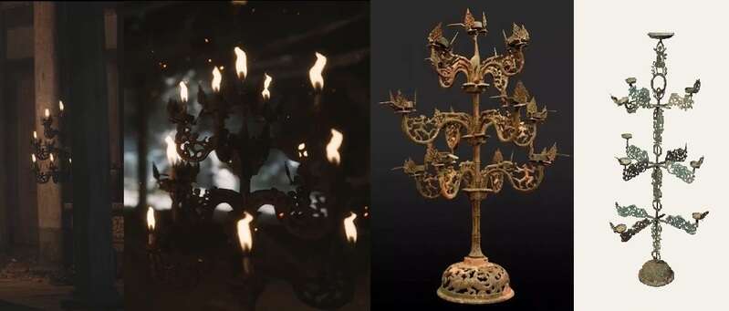 游戏中的灯(左一、二)与文物从造型到细节是“同款”