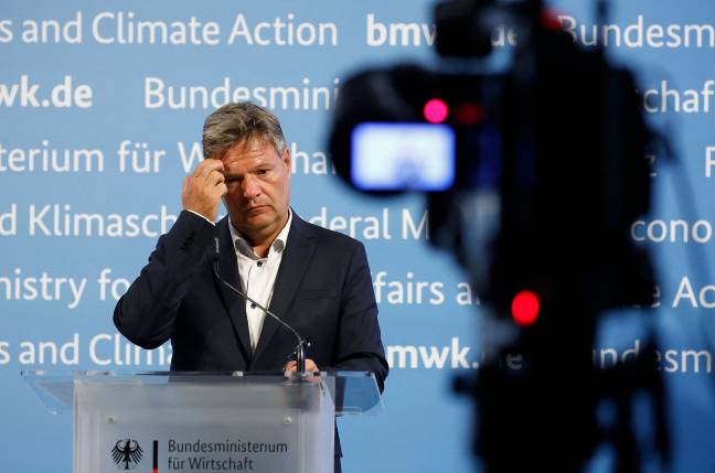 8月15日,德国柏林,德国副总理、经济和气候保护部长罗伯特·哈贝克宣布,该国家庭面临每年高达数百欧元的能源附加费。此举旨在分担进口能源不断飙升的成本。图片来源 视觉中国