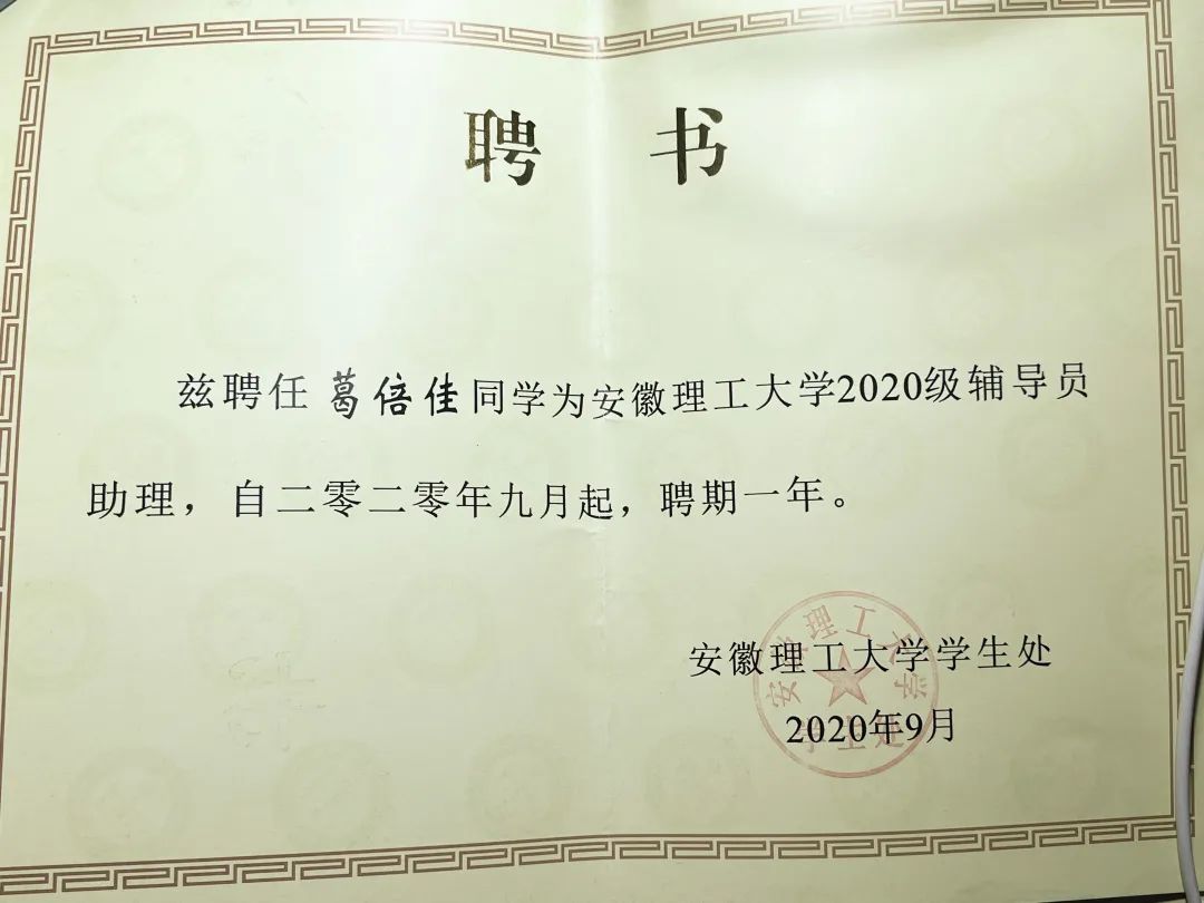 做为助导管理整个班级,她的日常工作并不轻松。“学弟学妹们刚开学的时候,领书、军训以及各方面的事项确实让我感到焦虑,但陪他们一起上晚自习,跟他们一起学习,互相监督,同样让我受益匪浅。”助导的职务是对她的又一次打磨。除了完成辅导员安排的任务,葛倍佳日常还会和班级同学沟通,交流学习经验和方法。“他们遇到问题的时候我给他们鼓励,我难过的时候也收到过他们的礼物,助导一职不仅让我锻炼了自己的交际能力和管理能力,更让我有了很宝贵的回忆。”聊到这里,总能发现葛倍佳脸上那充满欣慰的笑容,她眼里贮藏的便不只是助导繁重的工作,更是有温馨和美好。