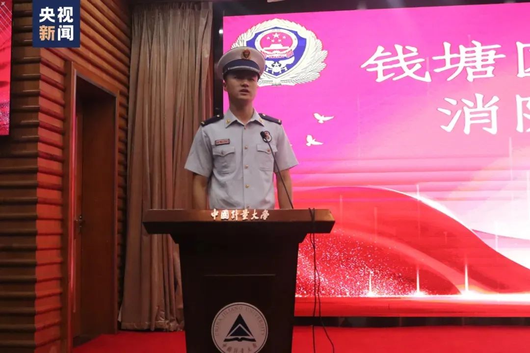 周亮作为杭州高校就读,并进入消防队伍的代表,也在现场向学弟学妹们分享了自己的故事和体会。