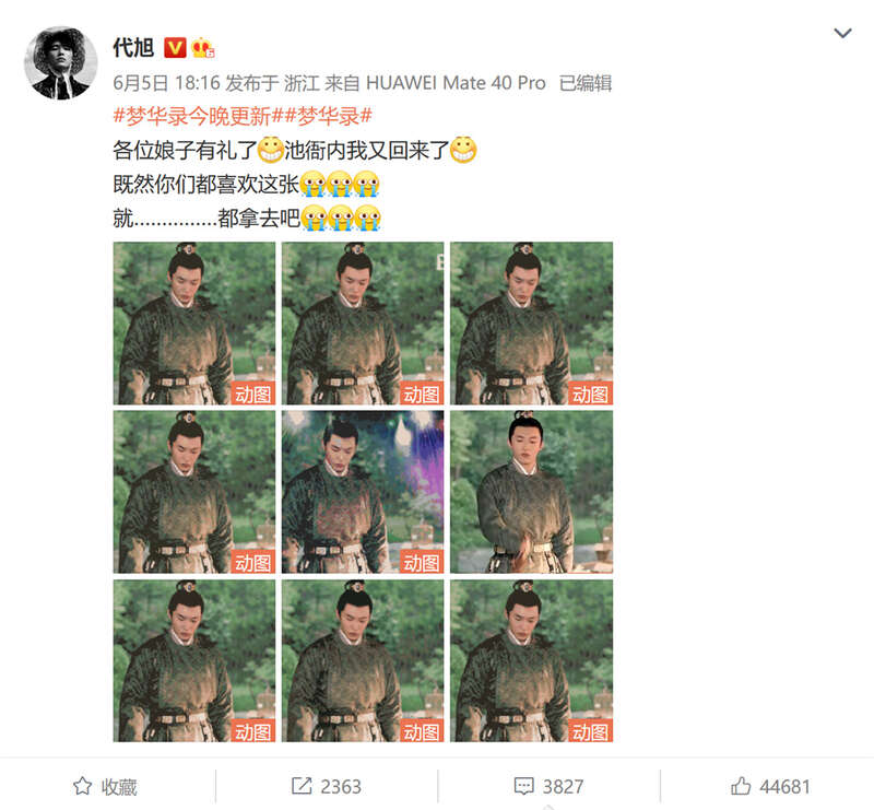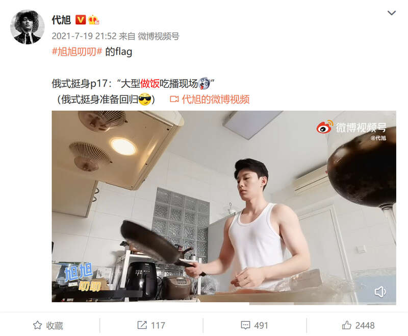 从微博就能看出来,代旭真的热爱生活,敞亮开朗,他推荐各类书籍,也定期更新碎碎念的vlog。他的爱好还包括做饭。在2021年初,代旭拍了个简短的vlog,立下flag,要完成“俄式挺身俯卧撑”这一动作。这是体操中常见的一个动作,仅通过双臂支撑让全身处于平板悬空静止状态,对普通人来说是超高难度健身动作。“原来想用一年的时间,完成一个自己不可能完成的一个事儿,想告诉观众一切都是可能的。”代旭解释这个vlog的初衷。