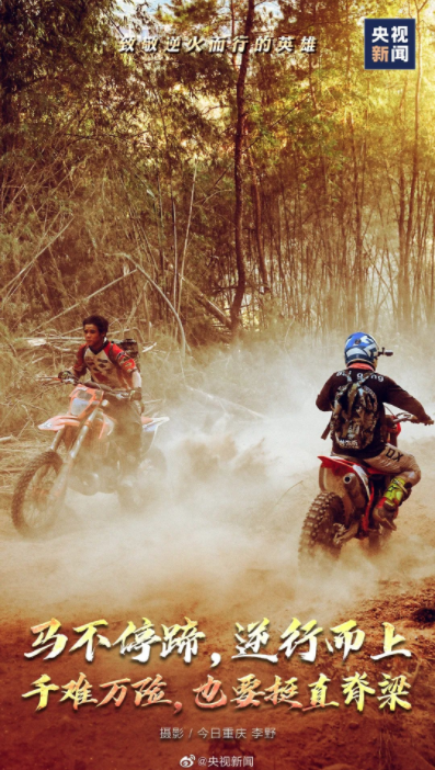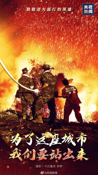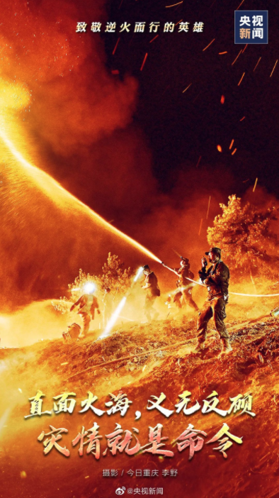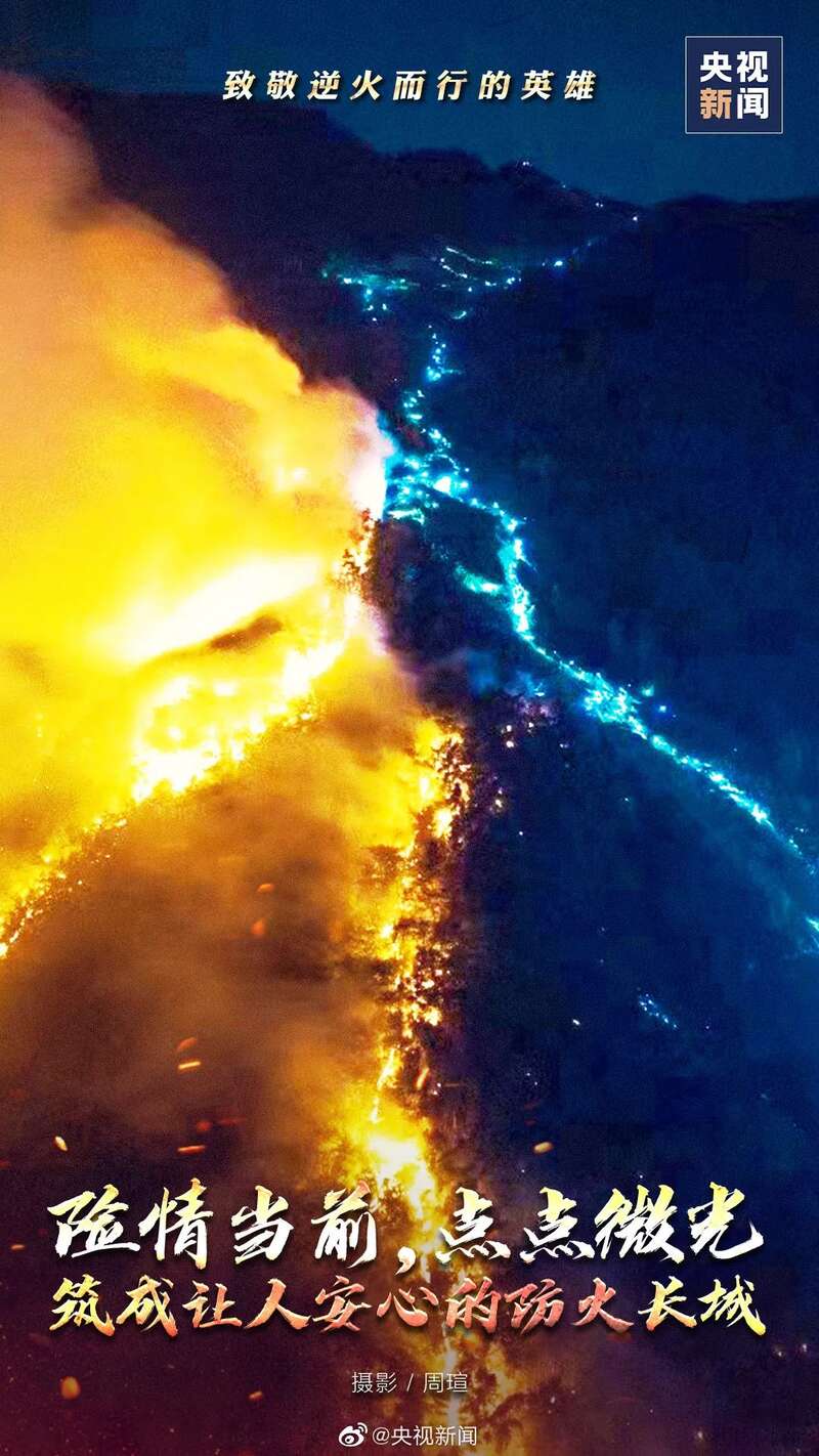 面前是漫天山火,身后是万家灯火。逆火而行的英雄,我们看不清你的脸,却看清一颗勇敢的心。谢谢你,蹈火出征的热血勇士;谢谢你,挺身而出的平凡英雄!