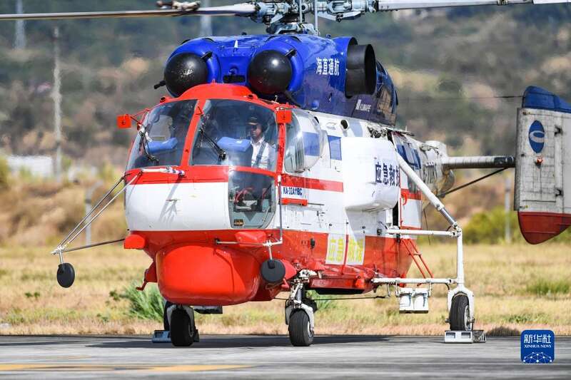8月28日,在重庆龙兴通用机场,来自四川广安的一架救援直升机准备起飞返回。