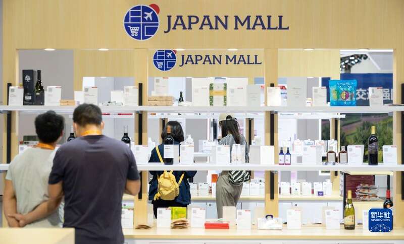 8月28日,在国家会议中心举行的服贸会媒体探营活动中,人们在日本展台观看展品。