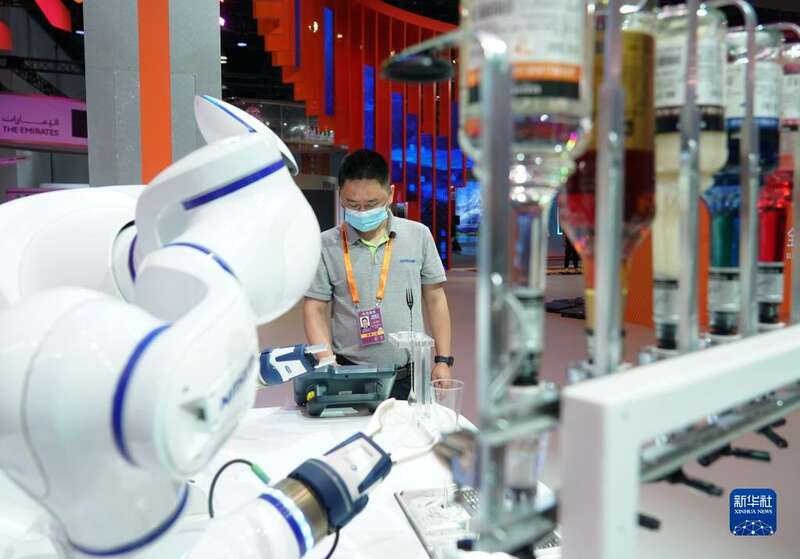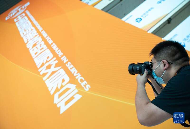 8月28日,在国家会议中心,记者在服贸会媒体探营活动中拍摄照片。