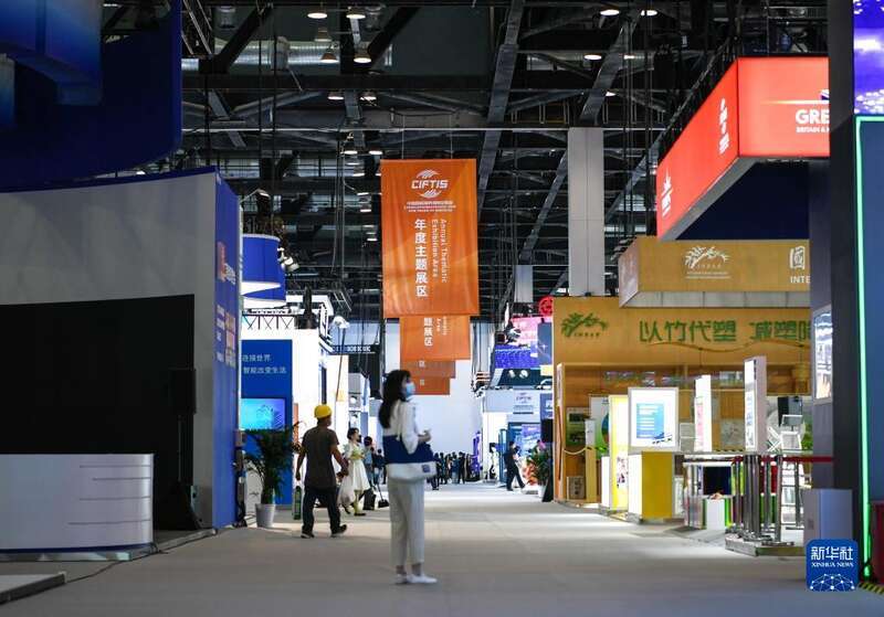 8月28日在国家会议中心一期拍摄的2022年服贸会年度主题展区。