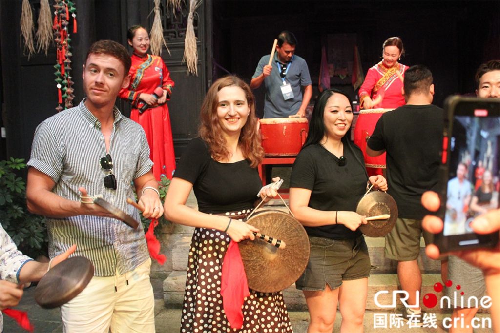 网红博主在屈原祠青滩民俗馆体验乐器 摄影 王毅