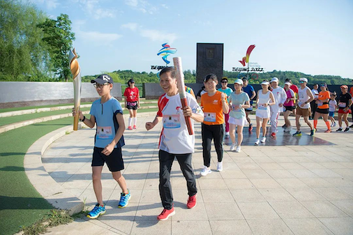 ▲2022年7月23日,来自北京十一学校龙樾实验中学的学生,高擎祥云和飞扬双奥火炬,从奥林匹克宣言广场出发,用“6.23公里+”接力跑的形式向奥林匹克精神致敬,向世界和平致敬!摄影/夏波光 张雪恩
