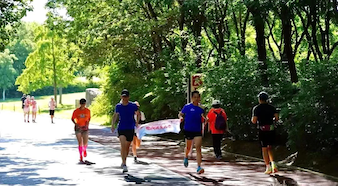 ▲在很多城市的公园里,越来越多的青年人参加到“向奥林匹克精神致敬”跑向巴黎活动中。