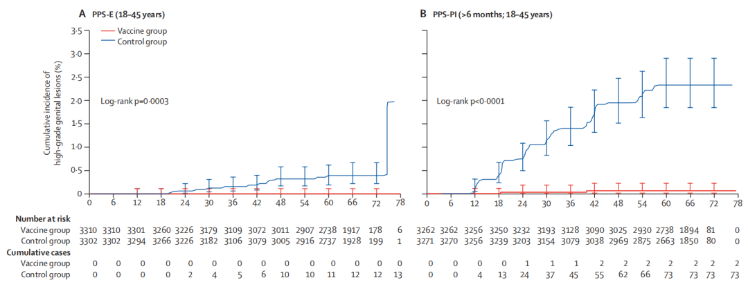结果表明,在首剂接种后30个月(符合方案集人群),接受3剂的9-17岁女孩的HPV 16/18型抗体水平(125.3 IU/mL和60.2 IU/mL)高于接受3剂的18-26岁女性(72.6 IU/mL和28.3 IU/mL),接受2剂的9-14岁女孩(73.2 IU/mL和24.9 IU/mL)与接受3剂的18-26岁女性相当。