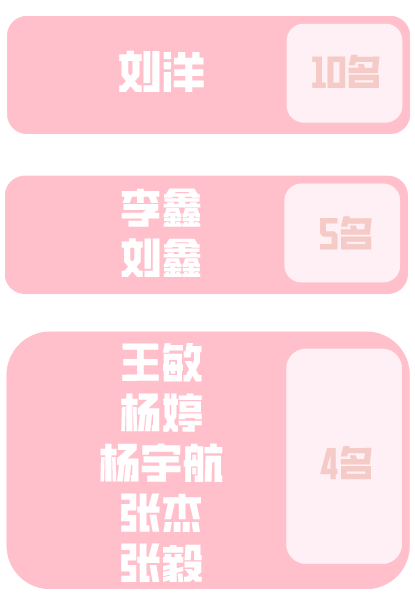 其中,刘洋 的名字最受欢迎,