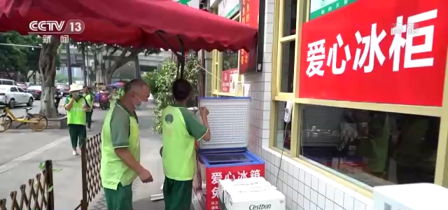 8月以来,四川成都持续出现高温天气,连续多日发布高温红色预警。高温酷暑下,成都一家火锅店门口摆放了一个“爱心冰柜”,免费给需要的人提供饮用水。