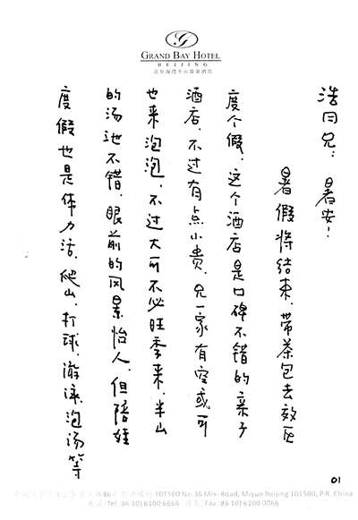 读了兄写在酒店留言笺上的信,颇感亲切且有趣,往年我也曾有在酒店留言笺上乱写乱画的习惯,这仿佛也需要一些空余的时间与心境,现在恐怕做不出这样的事了——明明每天做的事情并不多,但却总是感觉时间被填满了。