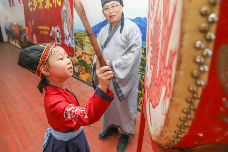 “开蒙礼”是古代启蒙教育之初举行的拜师礼,被称为人生“四大礼”之一。它是我国传统的礼仪习俗。在长兴县和平镇和平村文化礼堂“开蒙礼”仪式现场,身穿汉服的6周岁小朋友们通过正衣冠、诵读《弟子规》、拜师行礼、击鼓明志、启蒙描红等仪式,体验传统“开学第一课”,树立求知明礼、尊师重道意识。