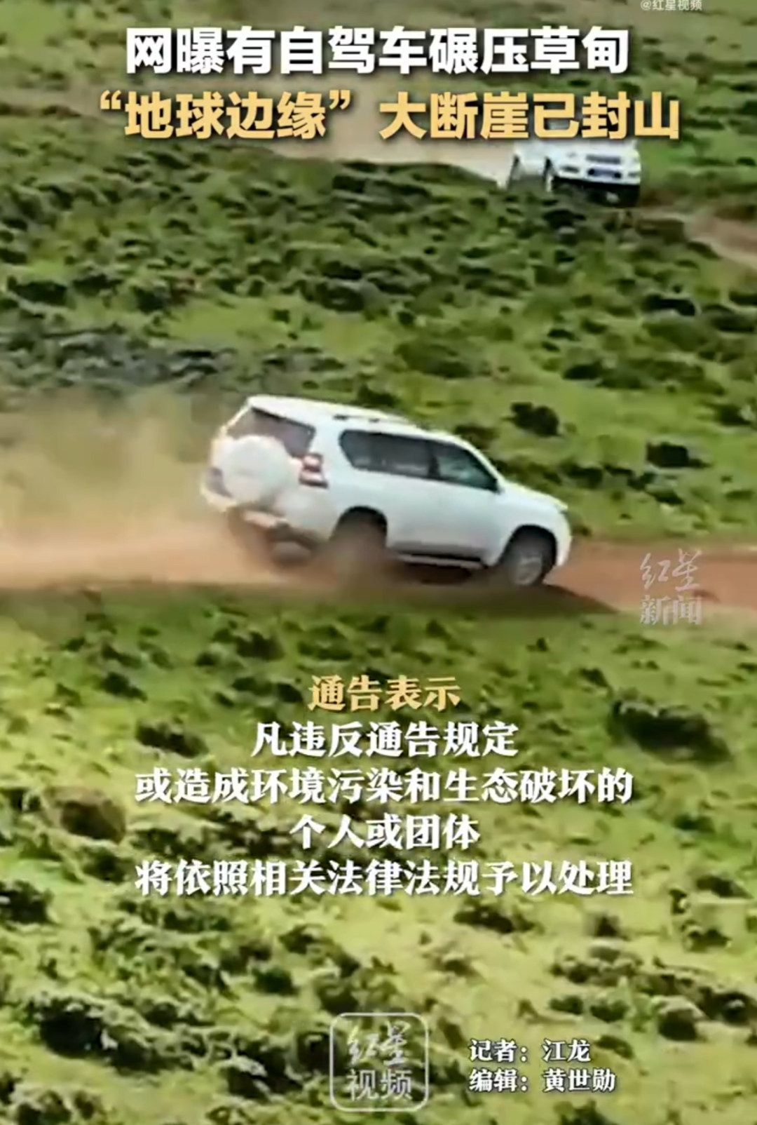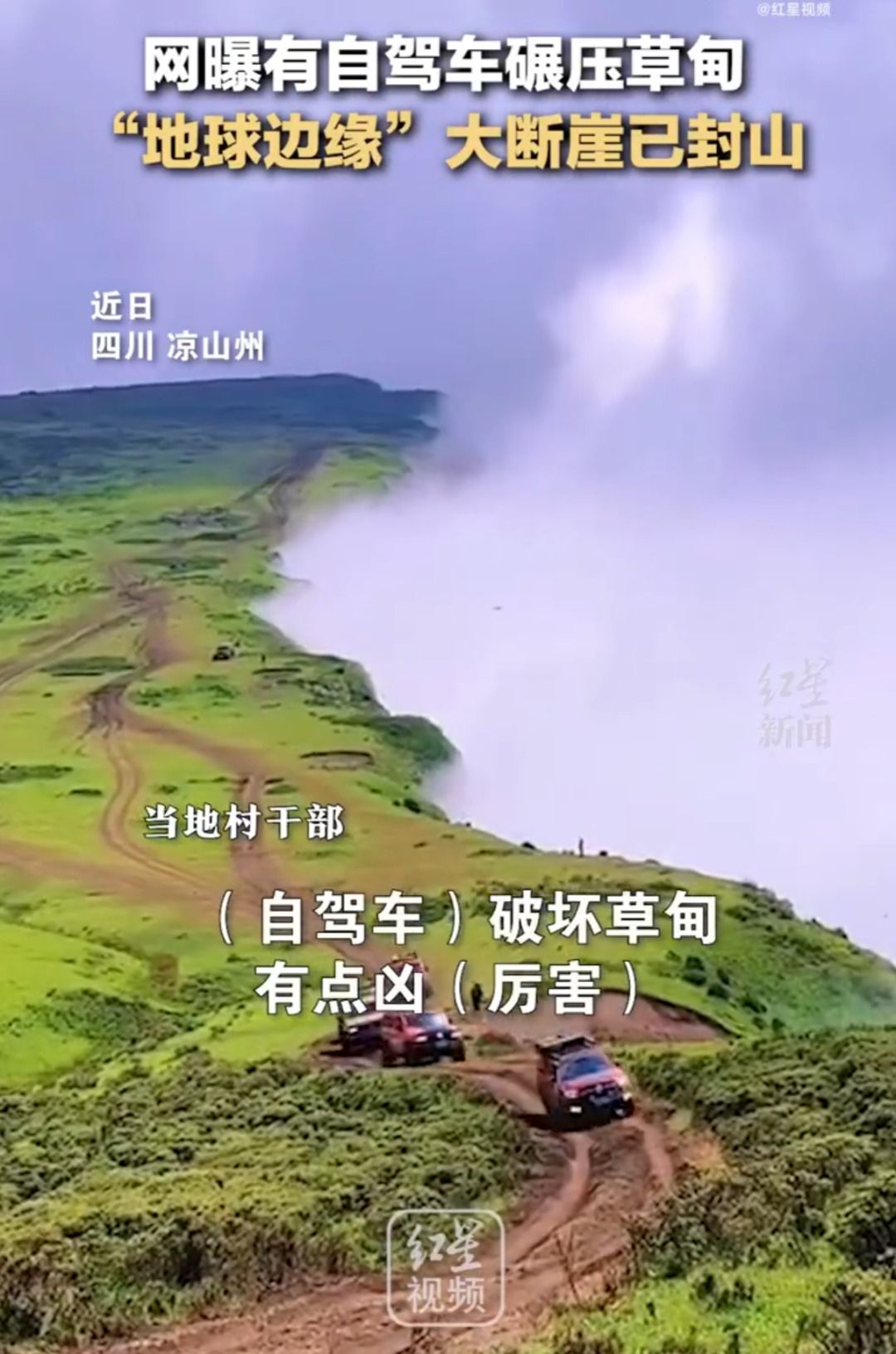 当地村民告诉红星新闻记者,龙头山大断崖离雷波县城有几十公里,随着大断崖去年在网络上走红,经常有外地自驾车前来打卡旅游,特别今年近期来的自驾车比较多,“有时一天有几十辆,高山上的草甸也遭到了车辆碾压。”