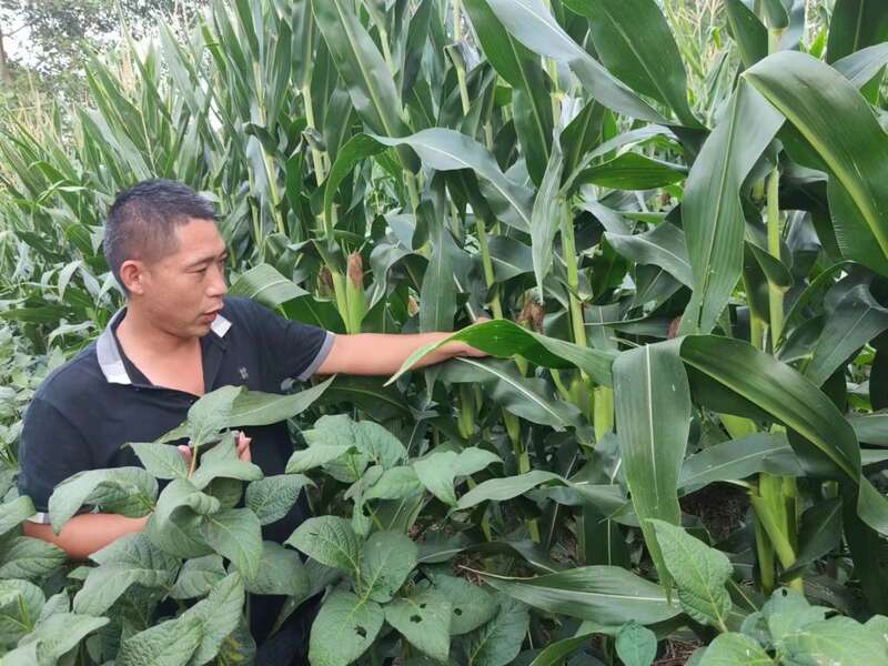 8月22日,宋来宝在田间察看灌浆期玉米长势。(受访者供图)