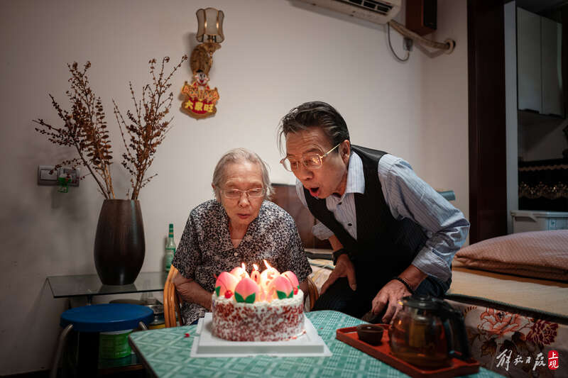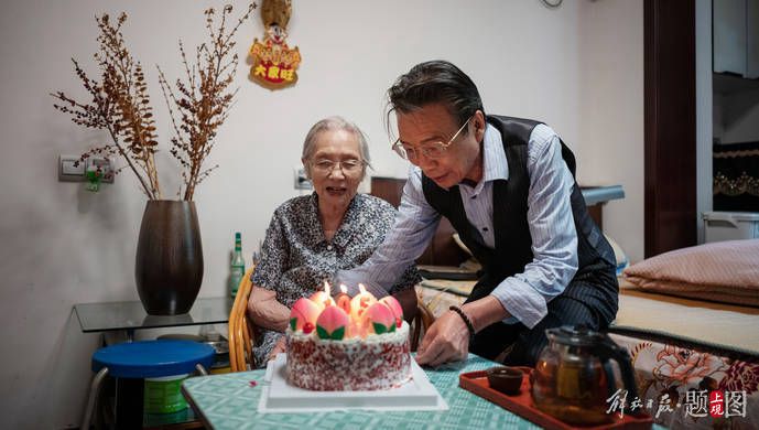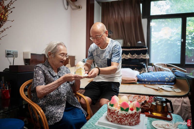 看到孙伟端着蛋糕进来,周奶奶有些迷惑,儿子提醒她,今天是她105岁的生日,这才恍然大悟,笑着说:“哦哟,难为情,难为情,侬特客气了!”
