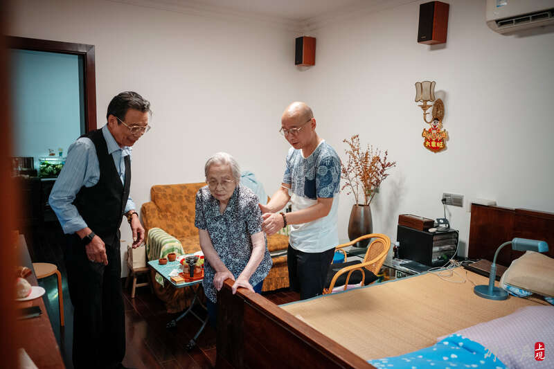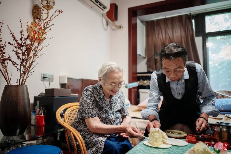 79岁的老徐经营着一家高级洋服定制店,太多老客人不放他退休,他也就只好继续做着。阿姨日夜照顾母亲,让他省心不少。“阿姨照顾得很好,老人只要说想吃啥,她就去买来烧。”
