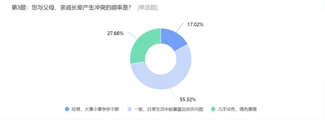 在中青校媒(福建)发布的一份关于代际交流的调查问卷中(共回收131份有效问卷),只有不到三成的大学生与父母几乎不产生冲突,长辈与孩子都在寻找着“如何和平共处”的完美答案。