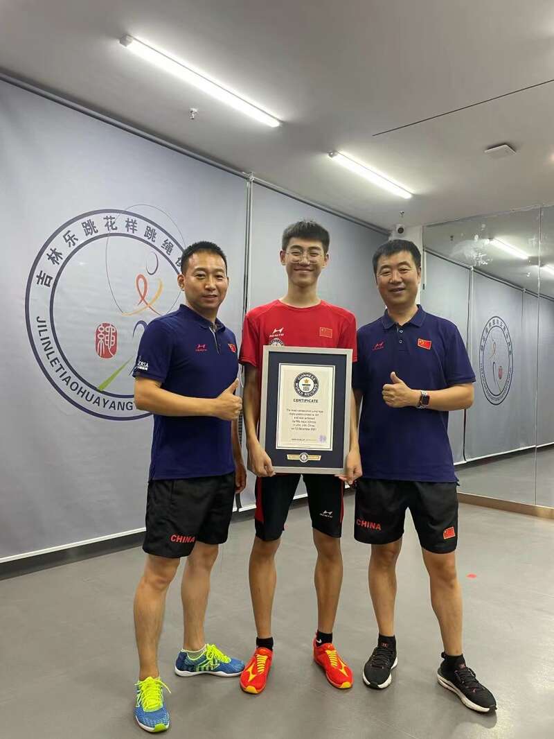 最近,吉林市江城中学高三学生马家俊收到了一张吉尼斯世界纪录证书。证书上写着:他在2021年12月13日,以701次的成绩刷新了“连续跳最多的三摇跳绳(男性)”世界纪录。