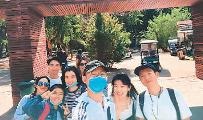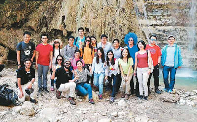 杨荣志(右一)和刘欢(前排右五)参加以色列留学生出游活动。
