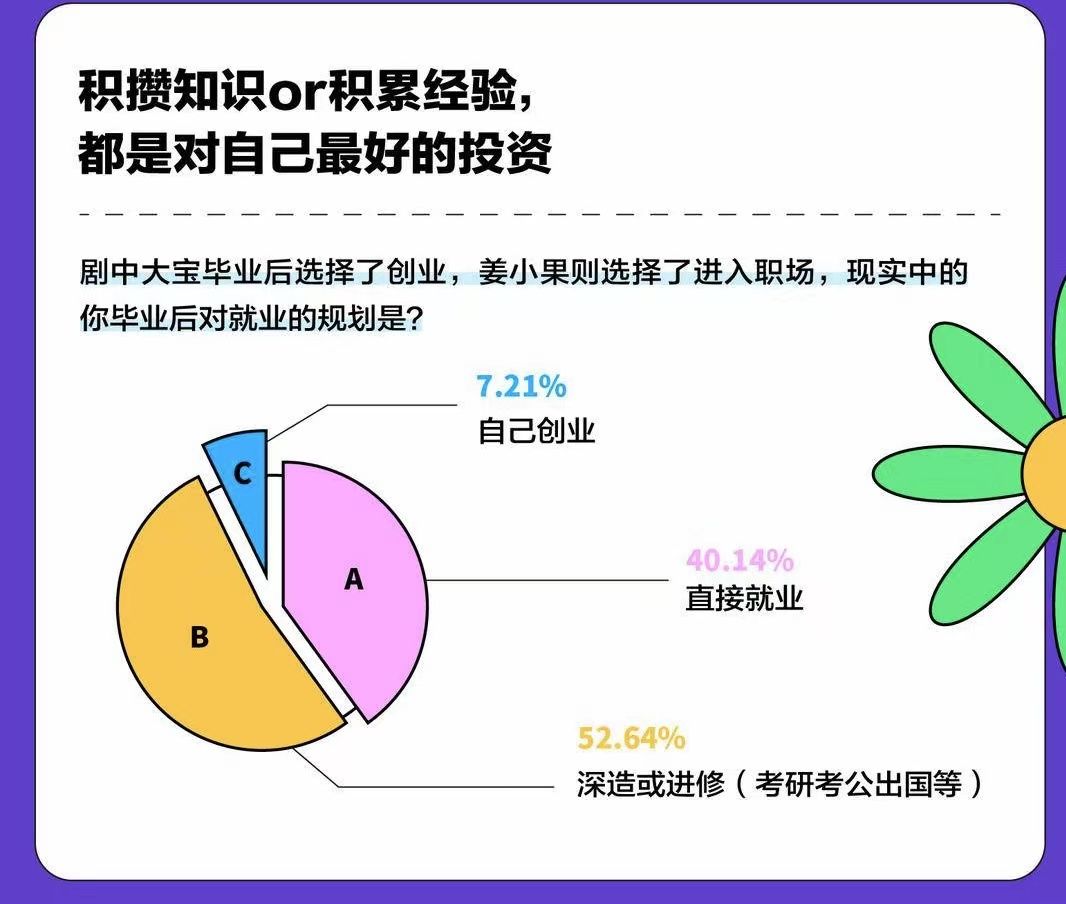 剧中小果的同事齐颂完全是不同的类型,姜小果用实习和刷GPA填满大学生活时,他在国外读书,实际是环游世界。毕业后继续游山玩水,途中投资了公司,想工作时轻松获得姜小果们“卷”来的职位。所以,他会直球拒绝老板有关下班不要着急走的提议,拒绝低效率内耗。所以,问题来了,现实中的你会直接拒绝加班的要求吗?