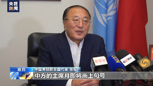 中国常驻联合国代表 张军:中方的主席月即将画上句号,但我们为世界和平、发展、安全而不懈努力的脚步可以说永远不会停顿。安理会担负着维护国际和平与安全的首要责任,面对当前国际安全领域诸多不确定、不稳定因素和复杂交织的矛盾、冲突,安理会的作用可以说不是降低了,而是更加重要了。