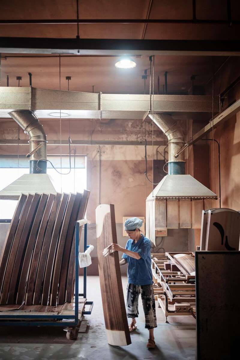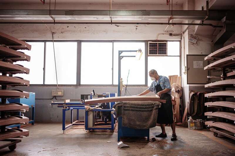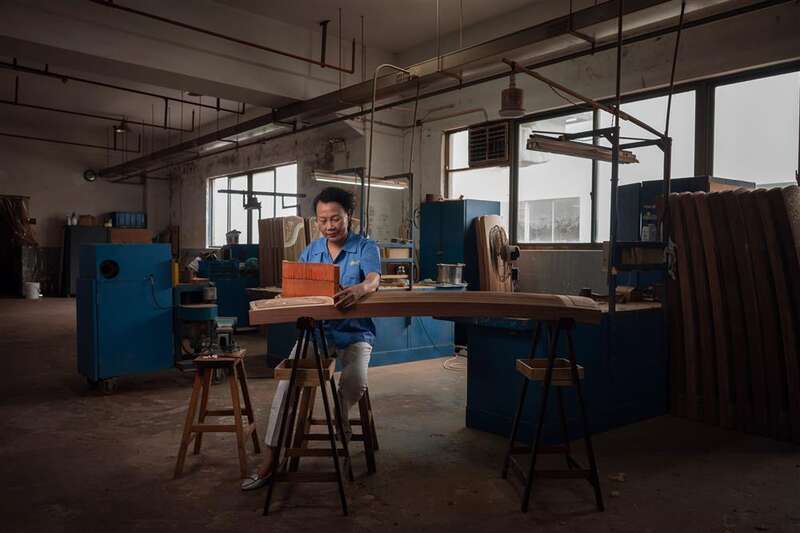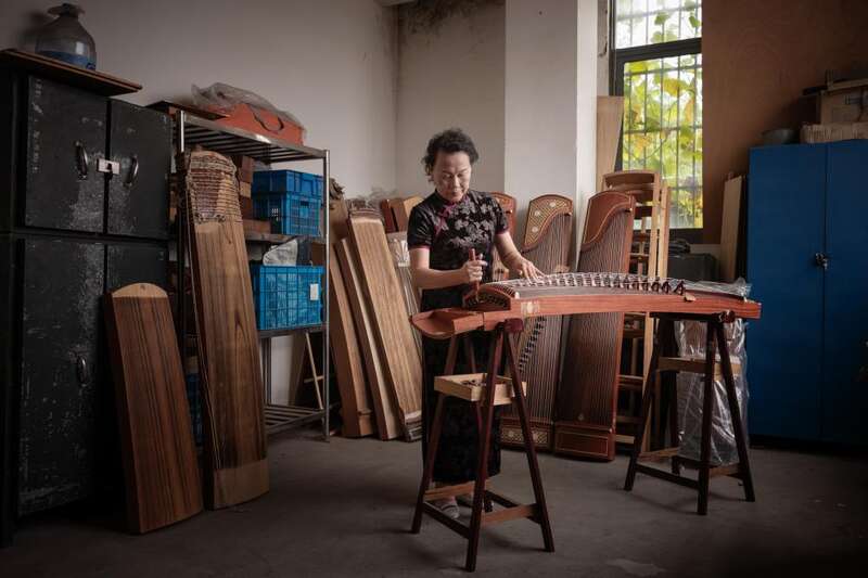 55岁的沈志强,眯着眼,把他自制的宝贝工具一一排开,细细修复筝头的装饰。独自在车间一隅,外表与世无争的他,却是位制琴好手,去年拿下比赛第一名,今年盘算着再战一回。问沈师傅制一台好琴的秘诀,他笑着看了一眼刚刚经过的一位女师傅。