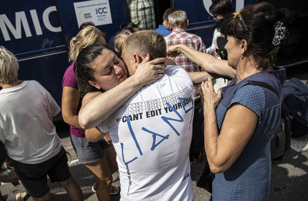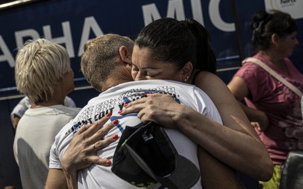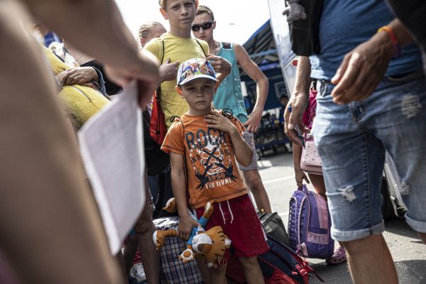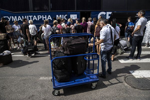 当地时间2022年8月31日,乌克兰扎波罗热,当地民众撤离。