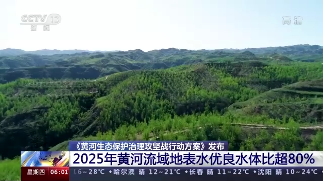 《方案》明确到2025年,黄河流域地表水达到或优于Ⅲ类水体的比例达到81.9%,基本消除地表水劣V类水体;森林覆盖率达到21.58%,综合治理沙化土地136万公顷,水土保持率达到67.74%。